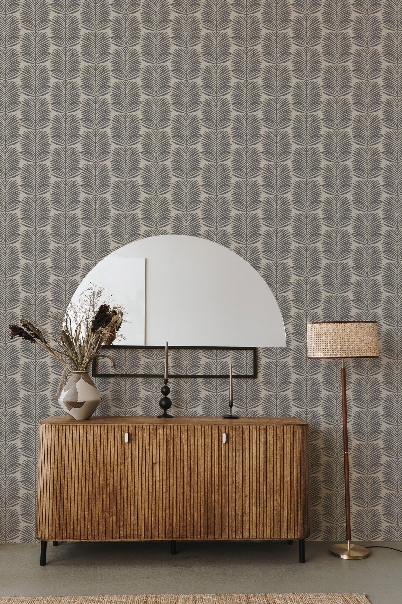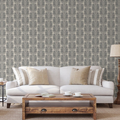Mitchell Black Organic Betty White Palm Leaves Wallpaper - Cashmere