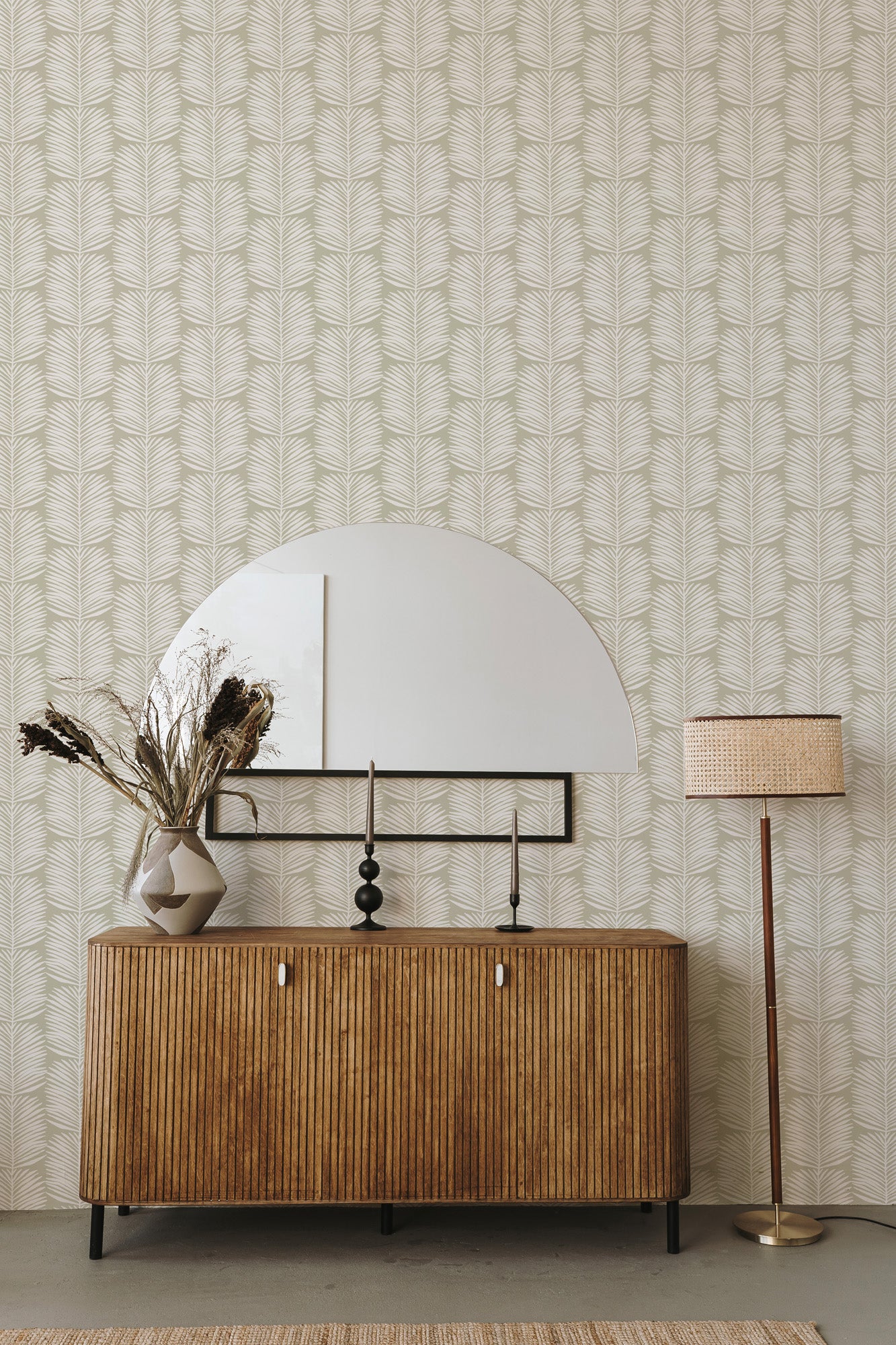 Palm Leaves wallpaper is a fresh and modern take on a classic nature-inspired design. With a simple repeating palm shape, this wallpaper adds a touch of the organic to your space in a geometric form. The mid-century vibe of this pattern brings some retro style yet feels perfectly at home in contemporary interior design. Bold, modern wallpaper designs by Mitchell Black. Explore artistic patterns, vibrant colors, and statement wall coverings made to elevate any space.