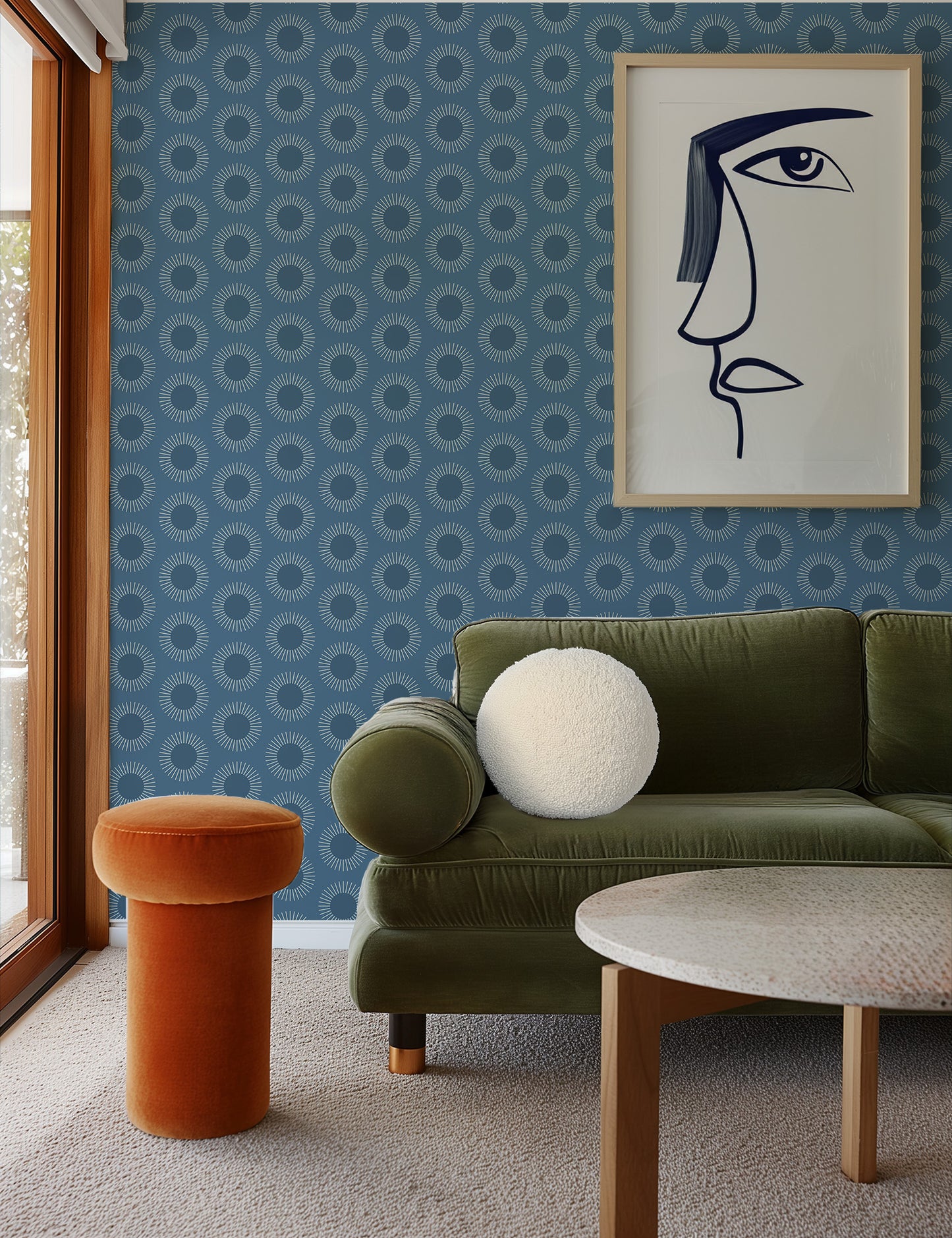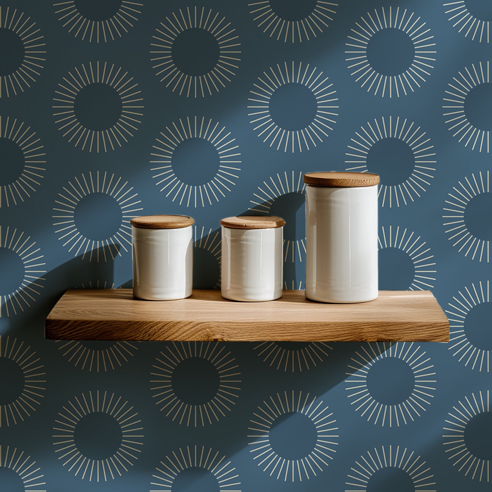 Sunburst enhances the aesthetics of any room by merging elemental simplicity with traditional design elements. Comprised of clean circles offset by slender, radiating lines, this wallpaper goes beyond basic decor to capture the quintessential spirit of solar motifs. Bold, modern wallpaper designs by Mitchell Black. Explore artistic patterns, vibrant colors, and statement wall coverings made to elevate any space.