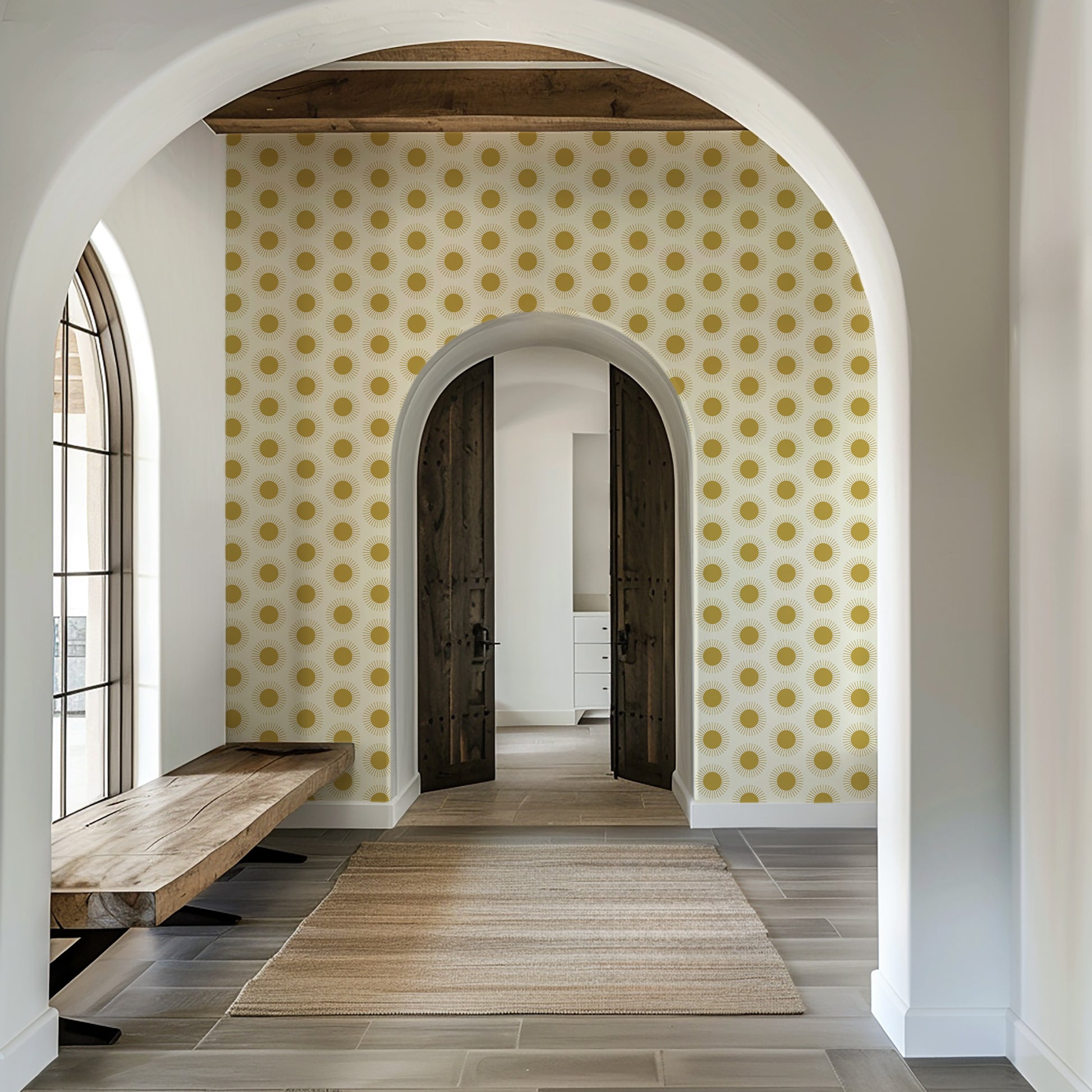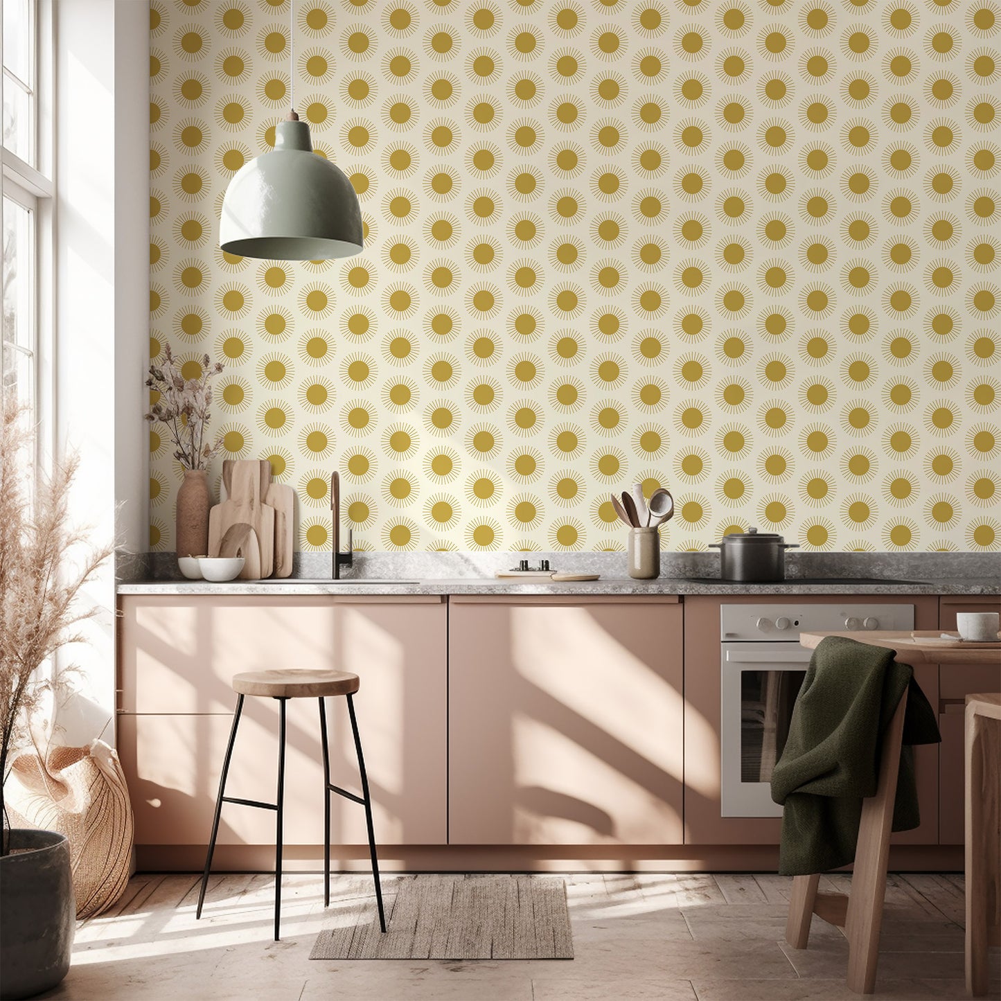 Sunburst enhances the aesthetics of any room by merging elemental simplicity with traditional design elements. Comprised of clean circles offset by slender, radiating lines, this wallpaper goes beyond basic decor to capture the quintessential spirit of solar motifs. Bold, modern wallpaper designs by Mitchell Black. Explore artistic patterns, vibrant colors, and statement wall coverings made to elevate any space.