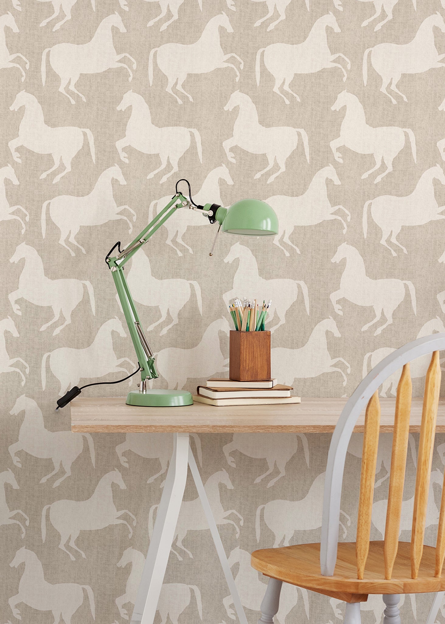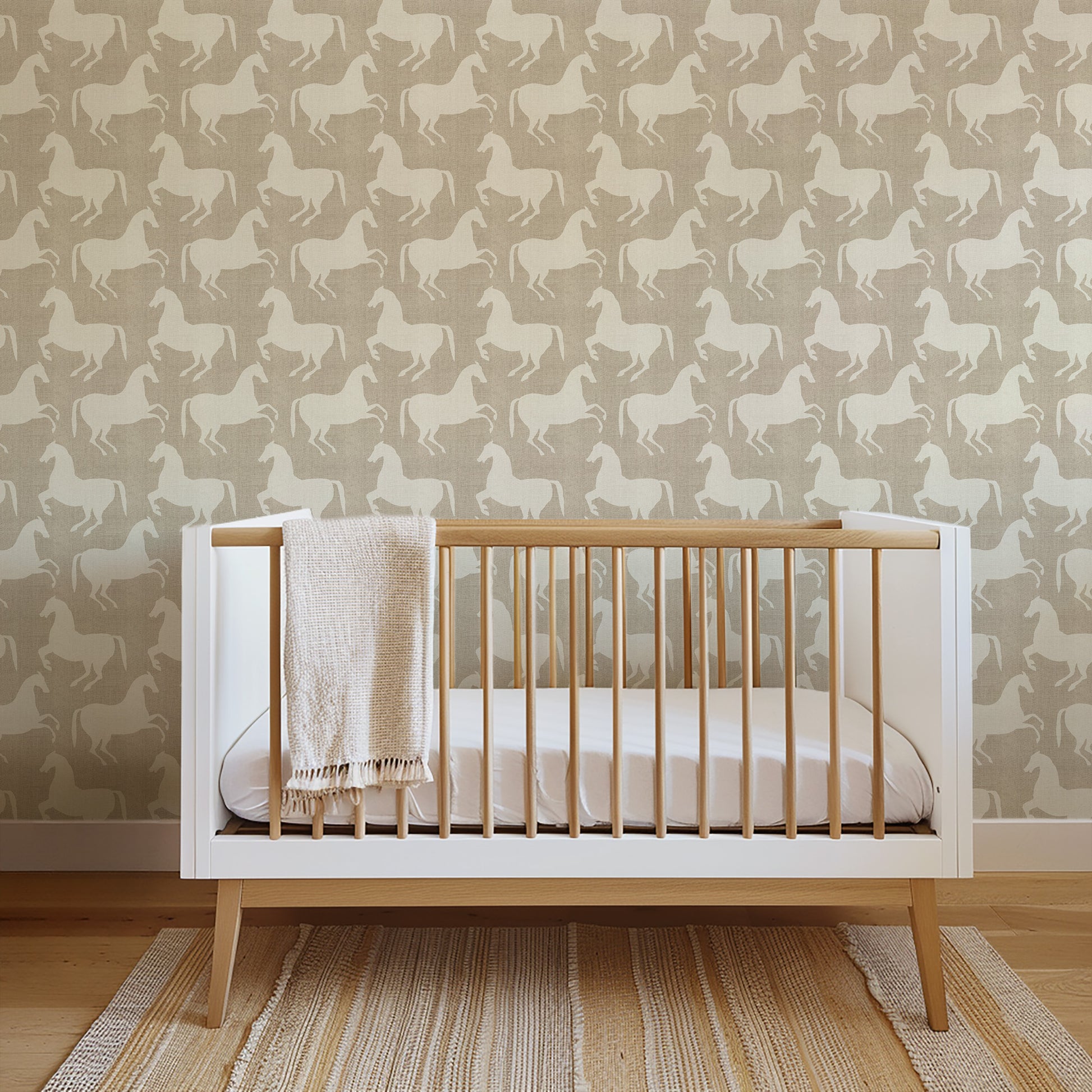 Mitchell Black Kids Paper Horses Wallpaper - Raw Linen