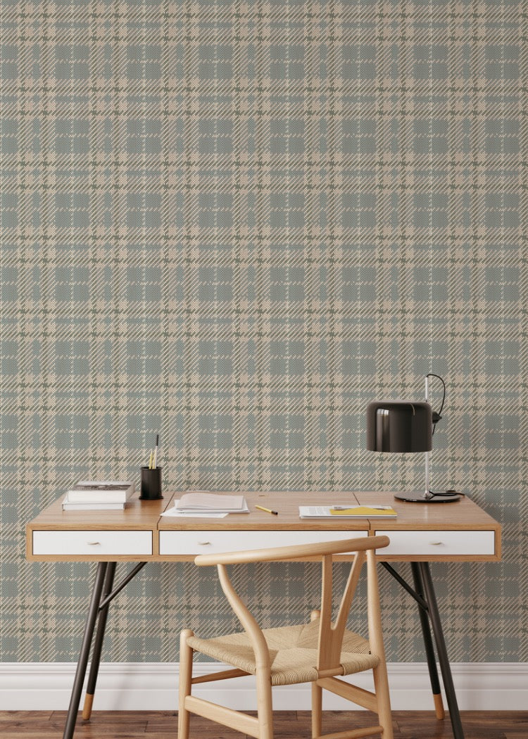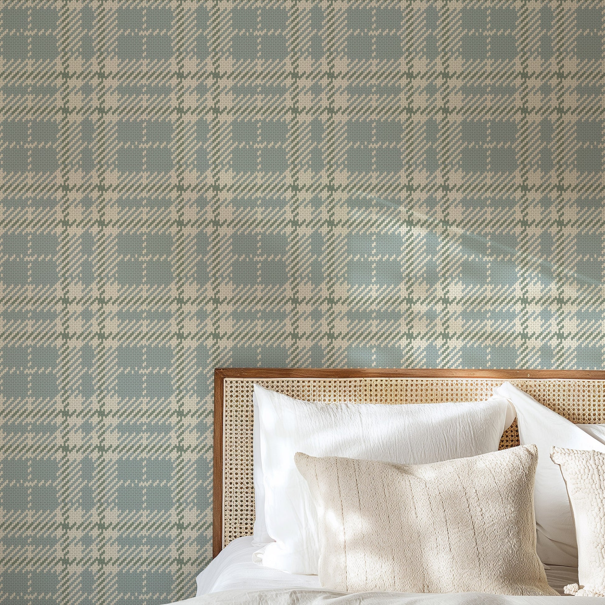 Mitchell Black Co-Ed Clark Plaid Wallpaper - Lake Shore Blue