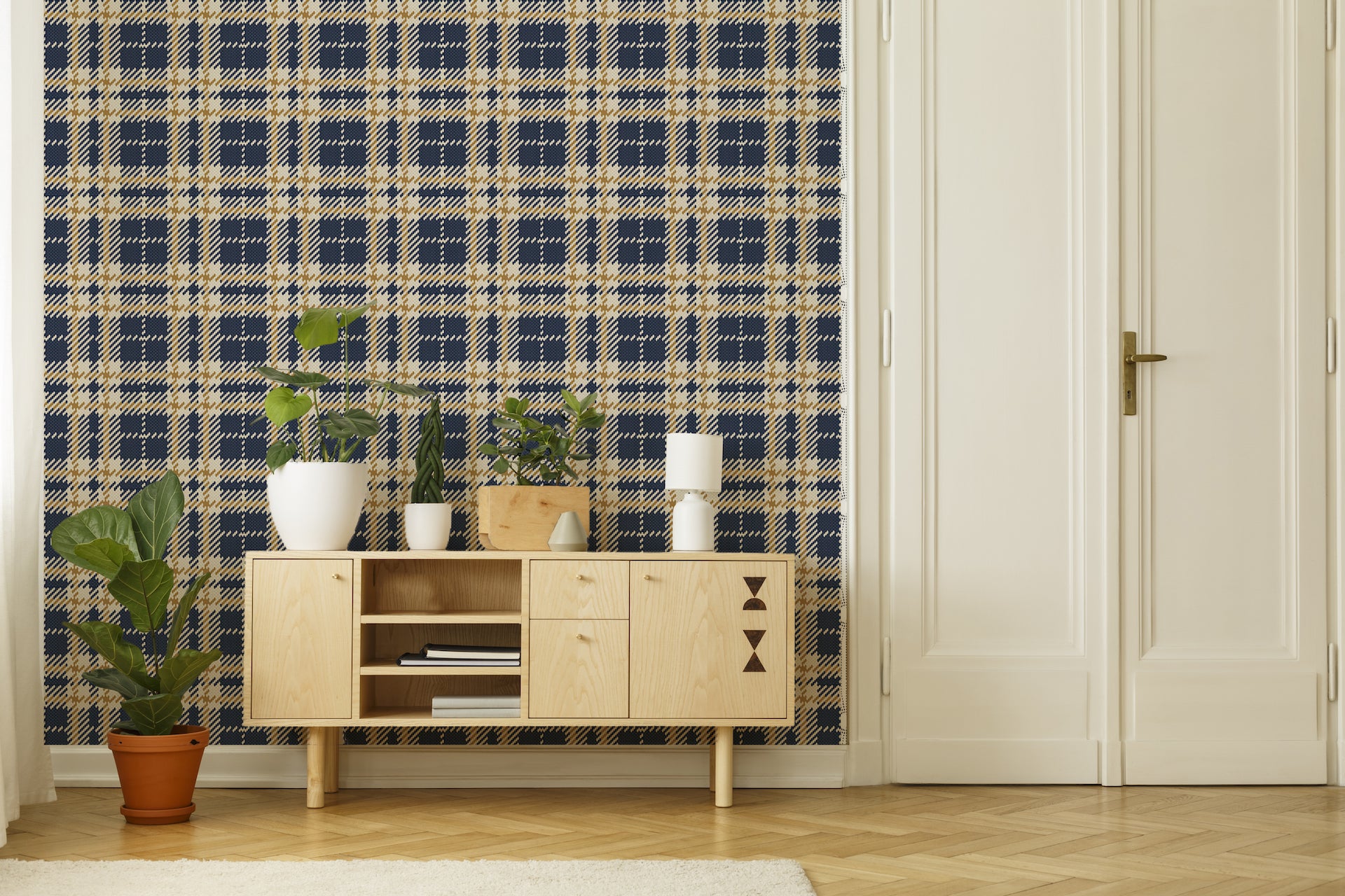Mitchell Black Co-Ed Clark Plaid Wallpaper - Navy Gold Coast