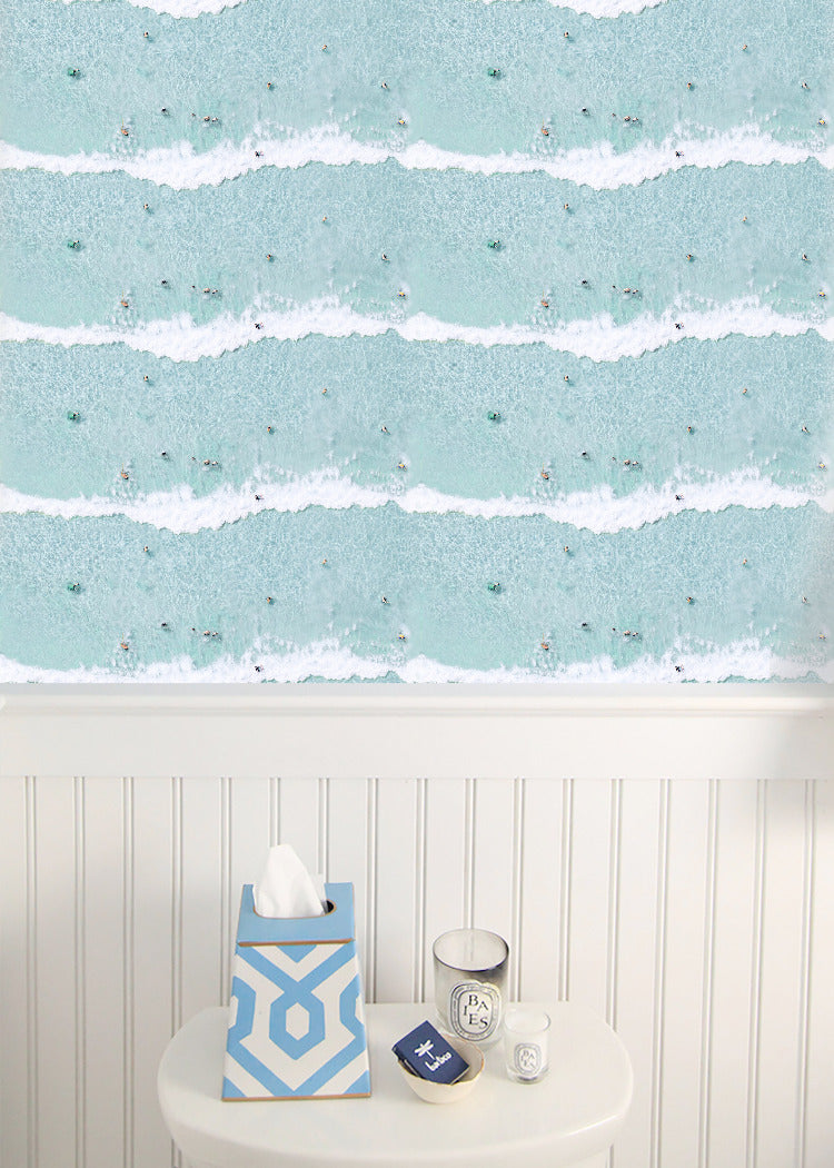 Cascading pastel blue ocean waves dotted with scattered bodysurfers form the Ocean Swimmers pattern, photographed over the stunning waters of Hawaii. Featuring four of Malin's aerial photography images, the collection draws inspiration from coastal images ranging from the Australian coast to the Italian Riviera. Bold, modern wallpaper designs by Mitchell Black. Explore artistic patterns, vibrant colors, and statement wall coverings made to elevate any space.