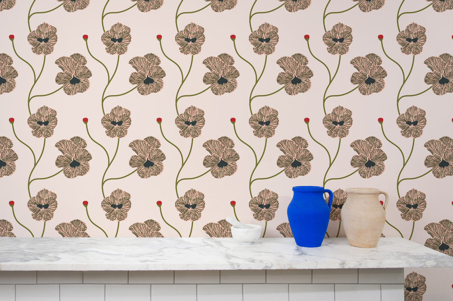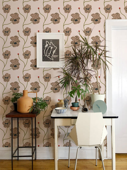 Mitchell Black Natalie Papier Flourish Floral Wallpaper - Rose Quartz