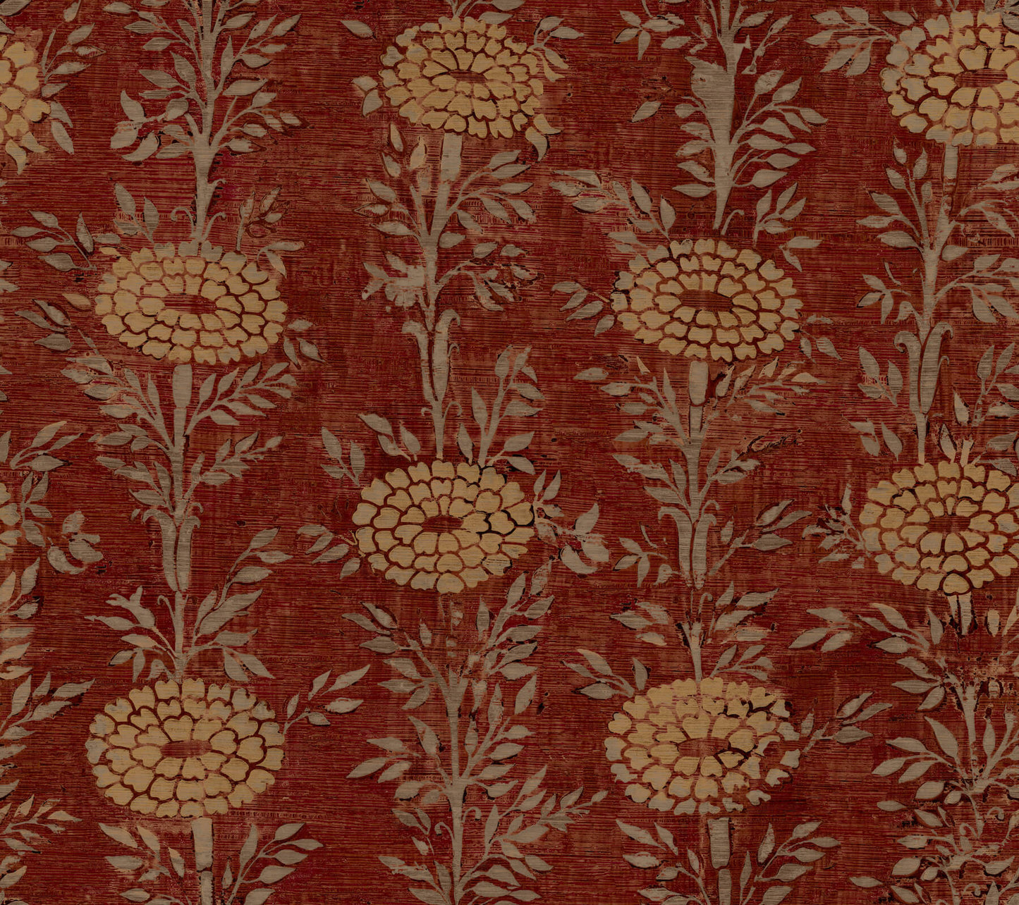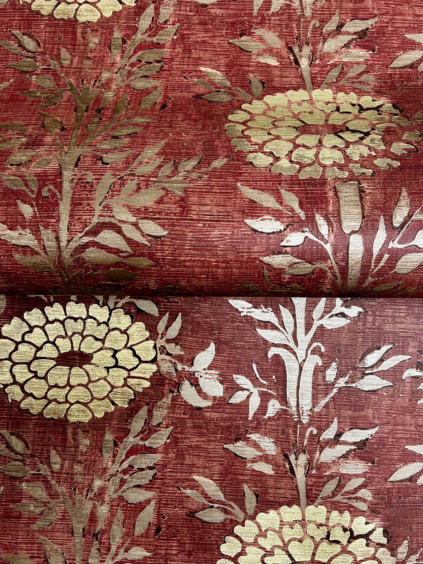 Ronald Redding Tea Garden French Marigold Wallpaper - Red & Gold
